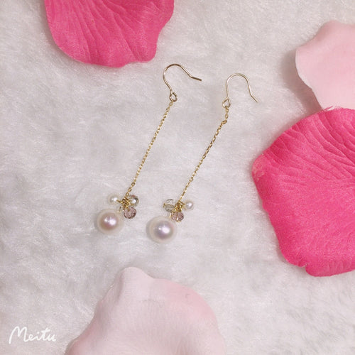 日本海水珍珠+施華洛世奇水晶長垂耳針