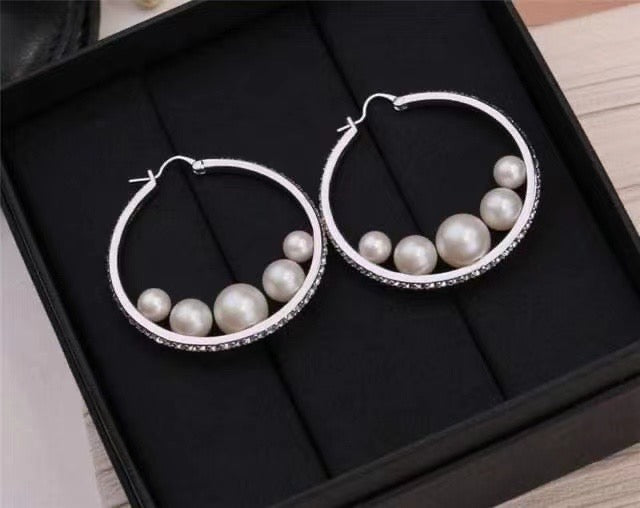 蘇聯鑽圈圈直徑3公分+左右兩邊不對稱各5粒天然淡水珍珠(共10粒)安全卡扣讓妳不用擔心突然間耳環就不見了真的是一款遊走在時尚.古典.優雅.溫柔中絕對會讓妳隔壁張大眼睛覺得😍哇!變美了的一款神奇耳環外面同款都是用人造水晶珍珠+水晶鑽,現在這個都是天然珍珠加上整圈的蘇聯鑽,品質真的不得了呀呀呀!